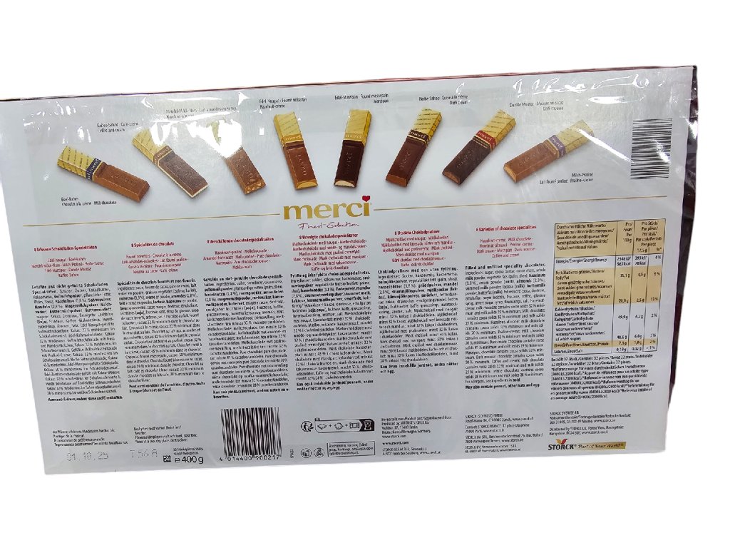 Merci Finest Selection 400g je pečlivě sestavená kolekce nejjemnějších čokolád, která nabízí širokou škálu chutí pro skutečné milovníky sladkostí. Každý kousek je mistrovským dílem, od mléčné až po hořkou čokoládu, doplněnou o lahodné náplně, jako je nugát, marcipán, krokant a mnoho dalších. Krabička obsahuje výběr pralinek, které jsou ideální pro rodinné setkání, oslavy či jako dárek, kterým vyjádříte své poděkování.