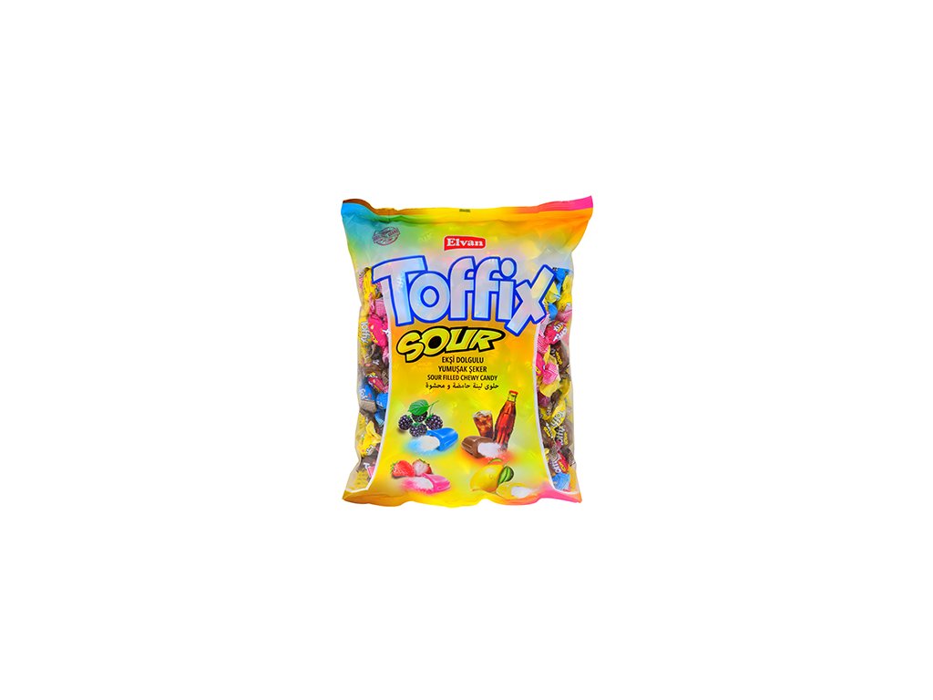 SMĚS MĚKKÝCH BONBONŮ PLNĚNÝCH KYSELOU OVOCNOU NÁPLNÍ.Složení: Cukrovinka (92%): Cukr, glukóza, ovocné šťávy (jahoda,citron, ostružina) (7'%) hydrogen. palm. tuk,, zvlhčovadlo (E420),jedlá hovězí želatina, regul. kyselosti (kys. citrón. ), příchuť (jahody,citrón, kola, ostružina), barviva (extrakt z červené řepy, E102 (tatrazin),karamel, brilantní modř) sůl, emulgátor (E322, E471), Náplň 8%:cukr, kyselina citrónová.,UPOZORNĚNÍ: Barvivo (E102)Může nepříznivě ovlivňovat činnost a pozornost dětí.Doplňkové parametry